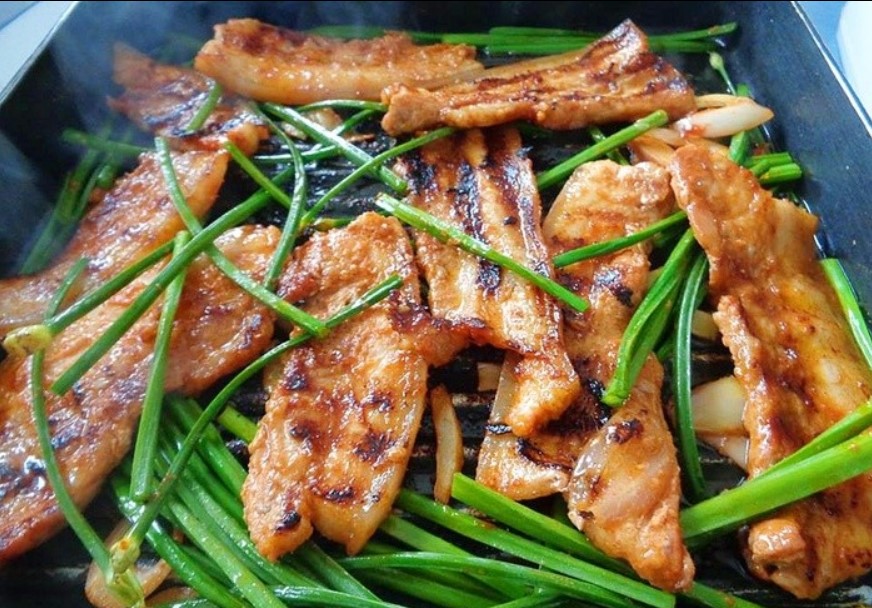 4. Món nướng thịt heo hẹ ăn cực đưa cơm