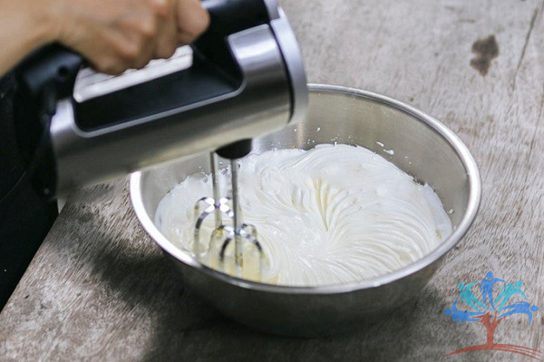 Bước 3: Sau khi đã đánh bông xong, cho thành phẩm vào bảo quản trong tủ lạnh khoảng 1 giờ.